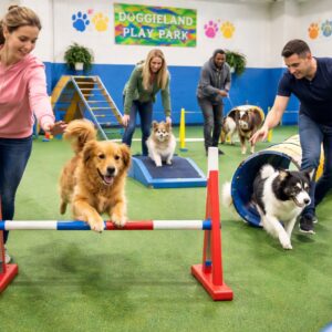 Indoor dog park, focused on agility training, basic, advanced and behavior modification training, and play